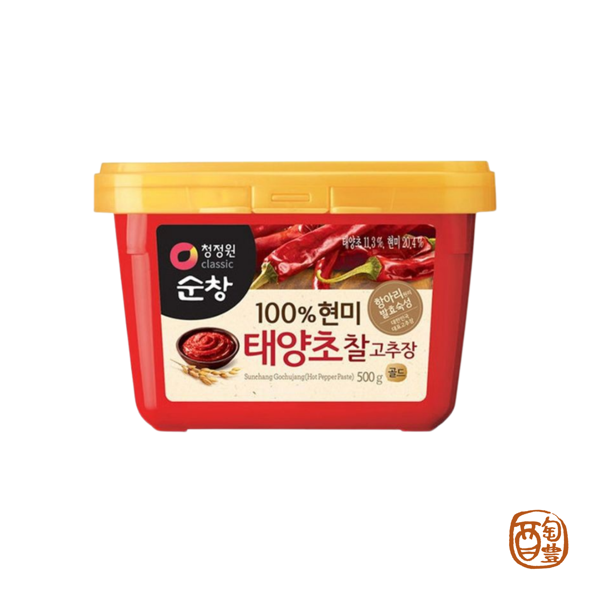 ◆商品特色 韓國特有辣椒醬.口感綿細、溫醇,煮麵.炒菜皆可。 ◆食用方法 拌飯、拌麵、炒菜、炒年糕、做沾醬等皆可。 ◆商品成分:玉米糖漿、辣椒醬(辣椒粉,鹽,大蒜,洋蔥),糙米,水,辣椒醬用豆漿(大豆,鹽),異麥芽寡糖,日曬鹽,辣椒粉,酒精,糯米粉,酵母,澱粉酵素。 ◆商品規格:500公克。 ◆保存期限:常溫18個月。